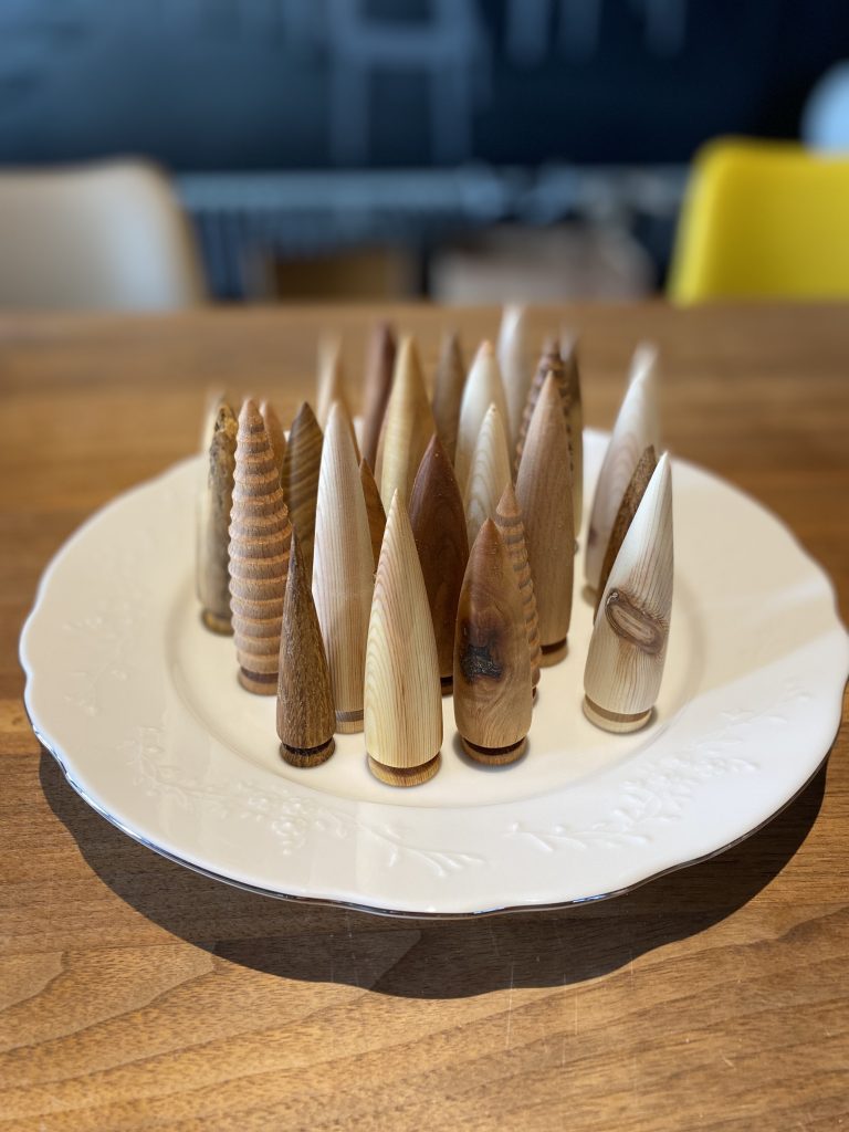Der Schloßpark liefert das Holz – Buche, Kirsche, Wacholder, Eiche, Walnuß. Den Rest besorgt unsere Drechselbank und verkürzt damit die langen Winterabende.