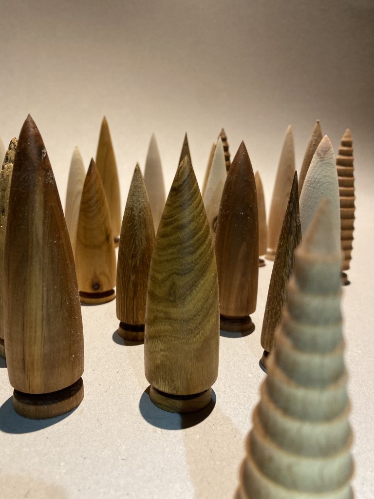 Und da isser, der klein Weihnachtswald. Resthölzer Ahorn, Esche, Buche, Kirsche, Eiche und Douglasie. Alles aus dem Park, vom letztjährigen Baumschnitt.
